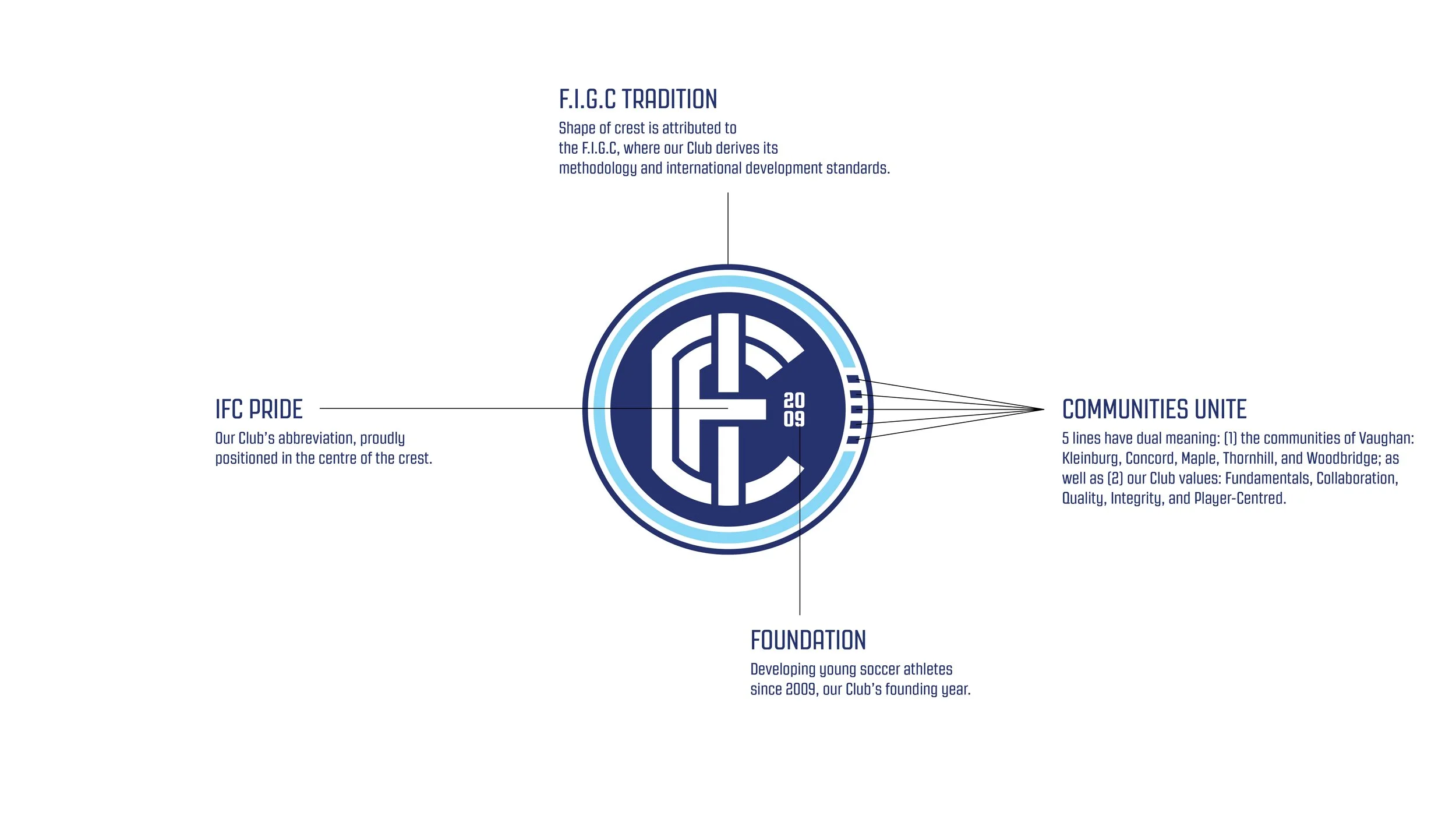 New brand identity for International Football Club (IFC), a soccer club located in Vaughan, ON, Canada. Launched in 2021.